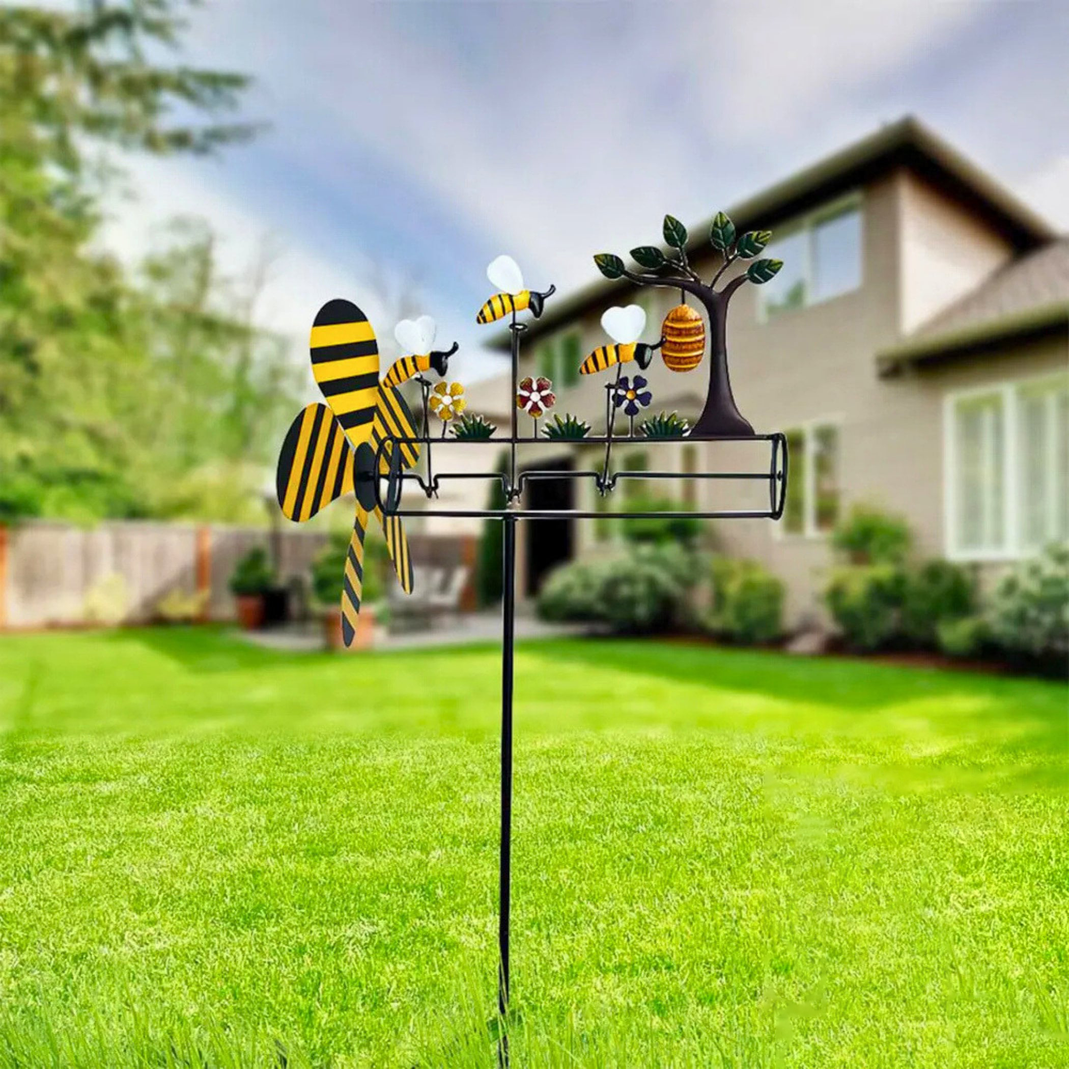 You're looking at our Lovely Bumble Bee Wind Spinner, a delightful addition to your garden decor! 🐝 This trio of bumble bees features a windmill that rotates with the wind, adding whimsy and charm to your outdoor space.