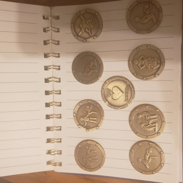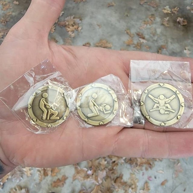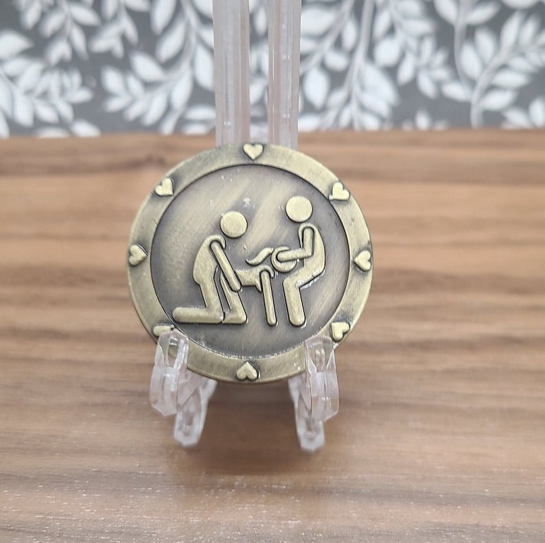 Give this durable metal coin as a reward that your partner can redeem whenever they want a little treat. Reward good behavior or just let them know you're in the mood for something special.