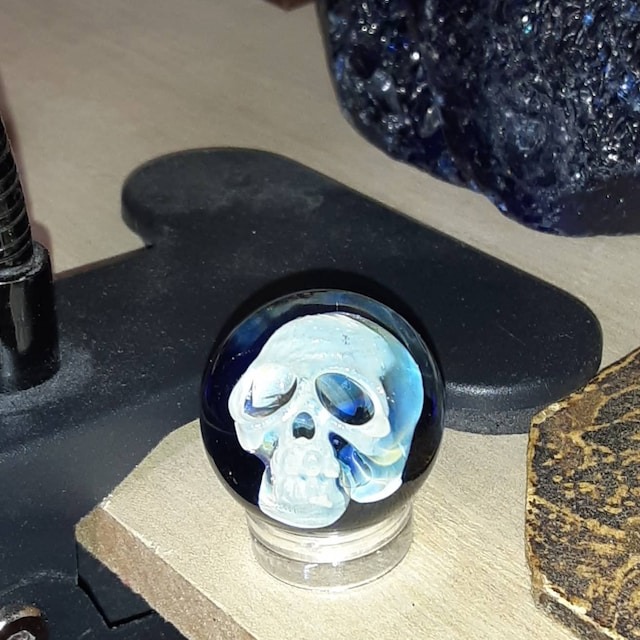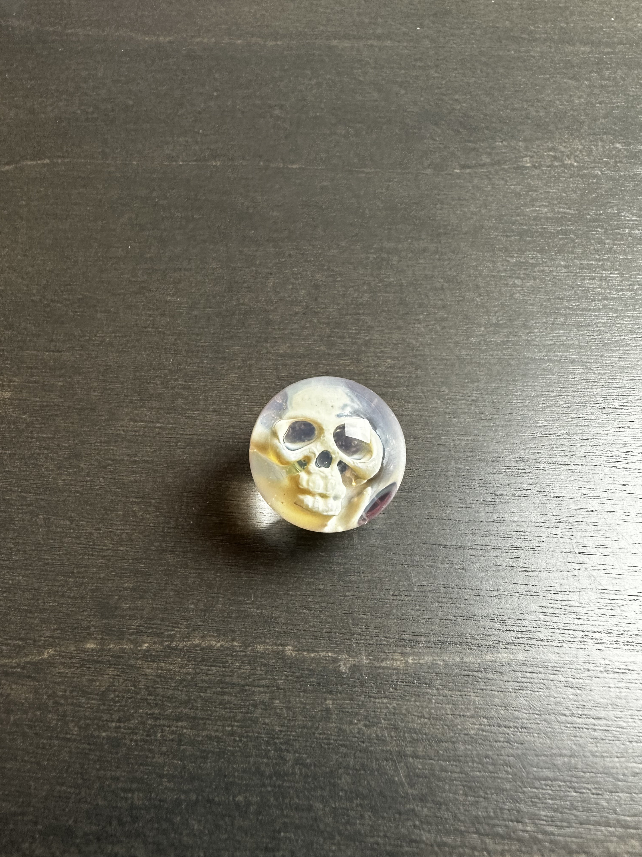 Bring a unique and eerie charm to your space with these Hologram Skull Marbles. Perfect for Halloween decorations or for adding a gothic twist to your collection year-round, these fumed skull marbles are a fun and spooky addition to any decor.